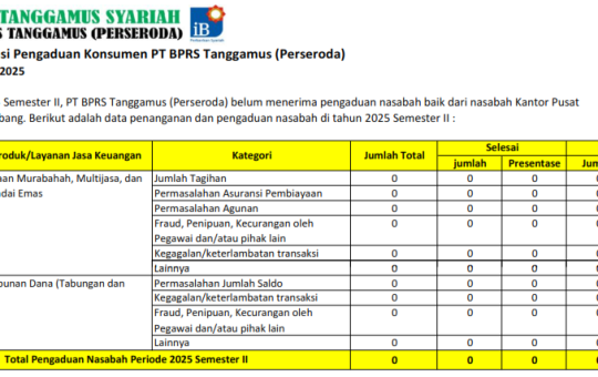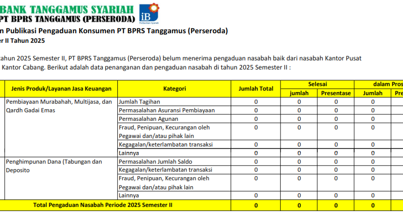 • LAPORAN PUBLIKASI PENGADUAN NASABAH YANG DITERIMA PT. BPRS TANGGAMUS (Perseroda)