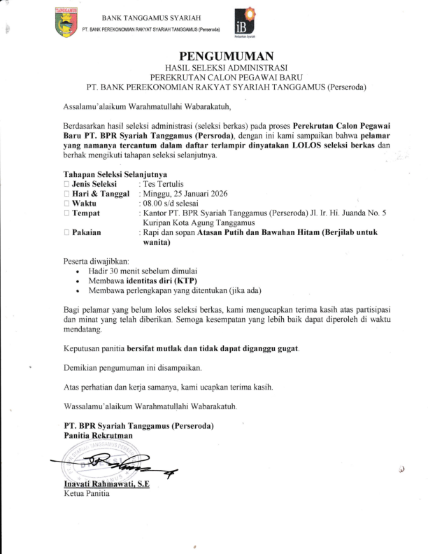 Uncategorized PENGUMUMAN HASIL SELEKSI CALON PEGAWAI TAHAP 1 5 hours ago admin Continue Reading Previous LOWONGAN PEKERJAAN 2026 More Stories Uncategorized LOWONGAN PEKERJAAN 2026 2 weeks ago admin Uncategorized LOWONGAN PEKERJAAN 2 months ago admin Uncategorized PERUBAHAN NOMENKLATUR 1 year ago admin Leave a Reply Cancel replyYour email address will not be published. Required fields are marked *Comment * Name * Email * Website Save my name, email, and website in this browser for the next time I comment.