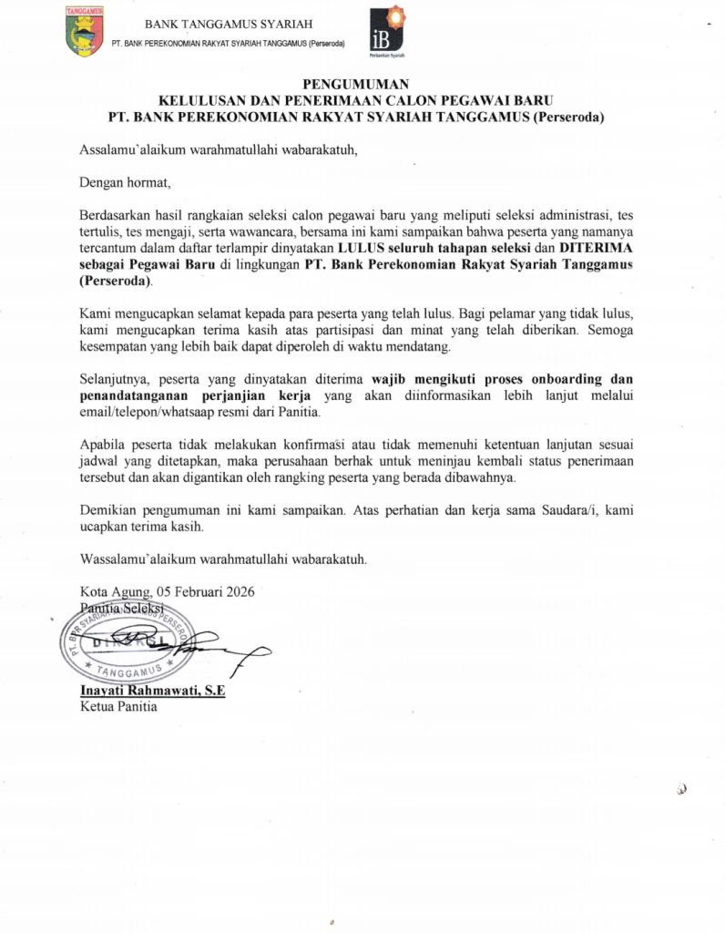 Uncategorized PENGUMUMAN HASIL TES TAHAP AKHIR 2 months ago admin Continue Reading Previous PENGUMUMAN HASIL TES TERTULISNext LAPORAN PUBLIKASI PENGADUAN NASABAH YANG DITERIMA PT. BPRS TANGGAMUS (Perseroda) More Stories Uncategorized LAPORAN PUBLIKASI PENGADUAN NASABAH YANG DITERIMA PT. BPRS TANGGAMUS (Perseroda) 6 days ago admin Uncategorized PENGUMUMAN HASIL TES TERTULIS 2 months ago admin Uncategorized LAPORAN REALISASI RAKB 2 months ago admin Leave a Reply Cancel replyYour email address will not be published. Required fields are marked *Comment * Name * Email * Website Save my name, email, and website in this browser for the next time I comment.